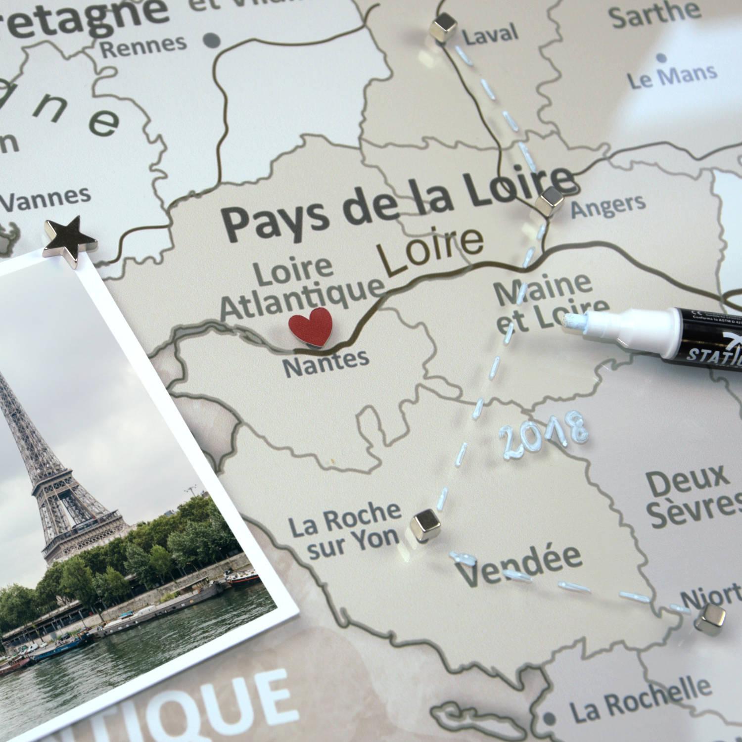 Keine Reise sollte vergessen werden, kein Erlebnis abgetan, kein Moment auf der Strecke bleiben. Alle deine besonderen Errungenschaften und Träume kannst du auf deiner eigenen Frankreichkarte festzuhalten.